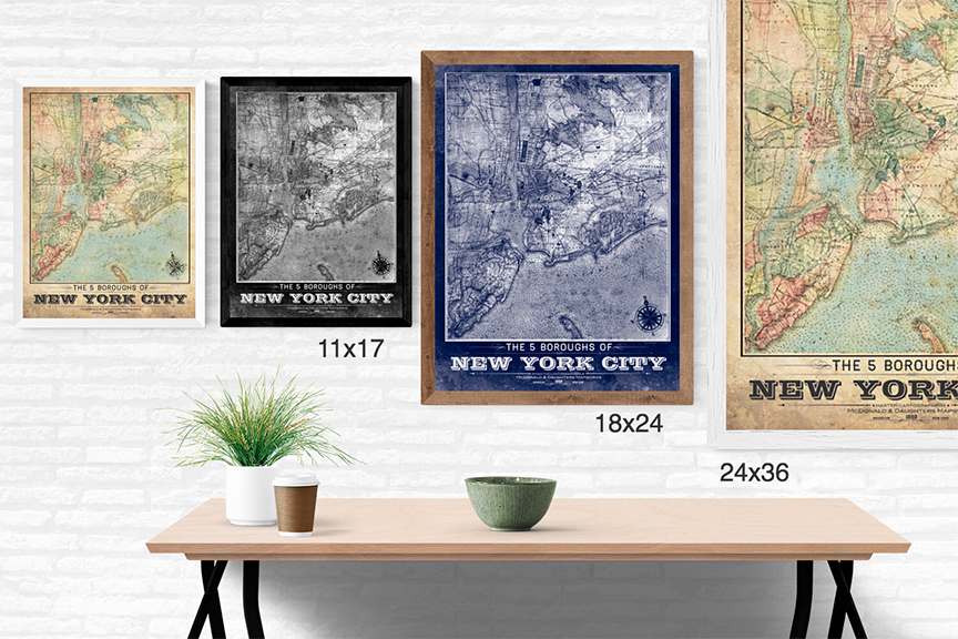 5 Borough New York City Vintage Remixed Map โ LOST DOG Art & Frame