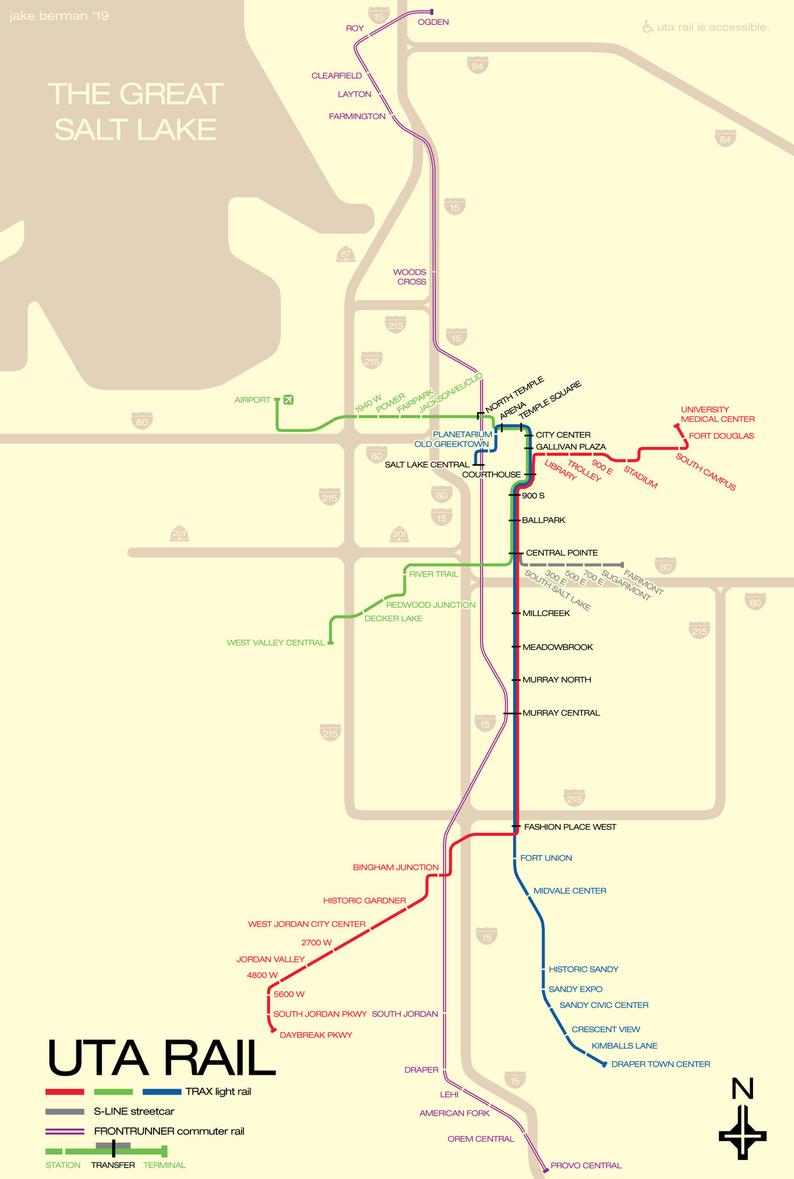 Salt Lake City UTA TRAX light rail map โ 53 Studio